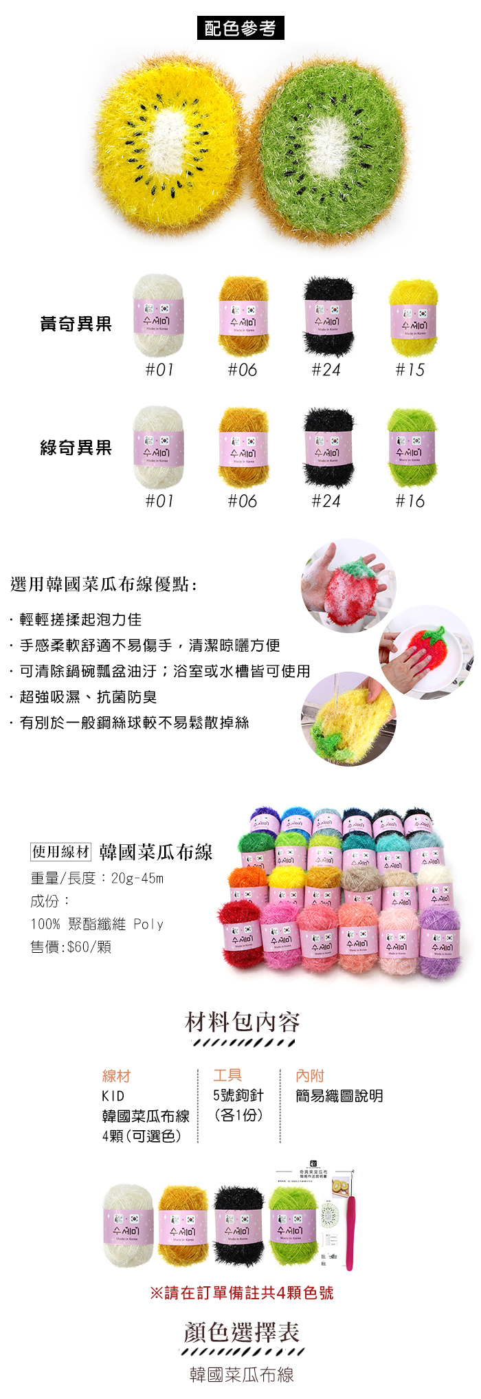 KID-韓國菜瓜布線4顆(可選色)