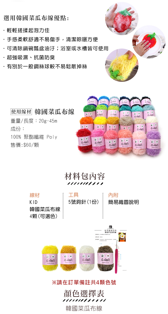 KID-韓國菜瓜布線4顆(可選色)